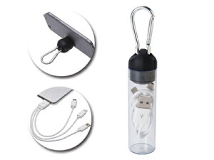 カラビナ付きのスマートなボトルに入ったUSB充電ケーブル。3種類も端末が付いているので多種の携帯に利用可能!ケースのキャップがスマホスタンドにもなります。 ■対応:TypeC、Lightning、MICRO...