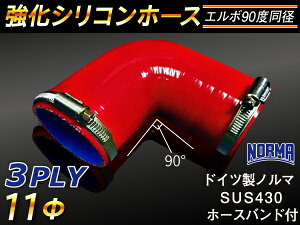 内径:11Φ(mm) 片足長さ:90mm 肉厚:約4.5mm 許容差:±0.5mm 構造:3プライ 7層構造 取付範囲:内径±1〜2mm程度 耐熱温度:約−50℃〜+200℃ ホースバンド個数:2個 バンド材質:SUS430 ハウジン...