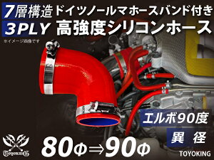 内径:80/90Φ(mm) 片足長さ:90mm 肉厚:約4.5mm 許容差:±0.5mm 構造:3プライ 7層構造 取付範囲:内径±1〜2mm程度 耐熱温度:約−50℃〜+200℃ ホースバンド個数:2個 バンド材質:SUS430 ハ...