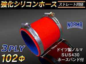 内径Φ76mm バンド付き 耐熱 シリコンホース ストレート ショート 同径 長さ76mm 赤色 ロゴマーク無し ドイツ NORMA ホースバンド 自動車工業 二輪バイク 重機 建設機械 各種機械 港湾産業...
