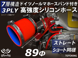 内径:89Φ(mm) 全長:76mm 肉厚:約4.5mm 許容差:±0.5mm 構造:3プライ 7層構造 取付範囲:内径±1〜2mm程度 耐熱温度:約−50℃〜+200℃ ホースバンド個数:2個 バンド材質:SUS430 ハウジング材...