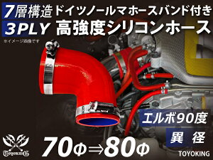内径:70/80Φ(mm) 片足長さ:90mm 肉厚:約4.5mm 許容差:±0.5mm 構造:3プライ 7層構造 取付範囲:内径±1〜2mm程度 耐熱温度:約−50℃〜+200℃ ホースバンド個数:2個 バンド材質:SUS430 ハ...