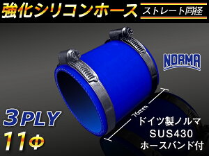 内径:11Φ(mm) 全長:76mm 肉厚:約4.5mm 許容差:±0.5mm 構造:3プライ 7層構造 取付範囲:内径±1〜2mm程度 耐熱温度:約−50℃〜+200℃ ホースバンド個数:2個 バンド材質:SUS430 ハウジング材...