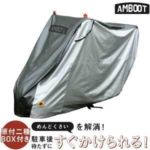 アンブート AMBOOT すぐかけられるバイクカバーサイズ:原付二種BOX付きカラー:シルバー/ガンメタリック素材:ポリエステル、アクリルシルバーコーティング/アクリルガンメタコーティング付属品:本体カバー...