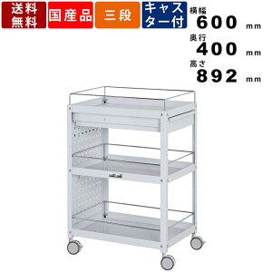 P-1404商品状態組立品仕様・特徴■便利なコボレ止め・キャビネット付きの3段コンビニワゴン(双輪キャスタータイプ)。キャスター付きなので、移動しながらの作業でも常に使いたい道具を手元に置くことが出来ます...