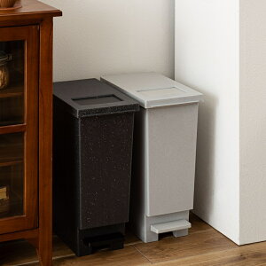 2種類の開け方でマルチに使えるダストボックス 上からプッシュ&足元ペダルの2種類の開け方が出来る便利なダストボックス。ゴミの大きさや状況に応じてマルチに活躍します。石目調の模様を施したデザインもポイント。 【サイズ】W20×D35.