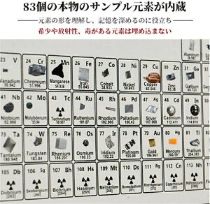 商品スペック商品説明 【本物の元素】この周期表には、見事なディスプレイのための83個の本物のサンプル元素が含まれています。 子供たちがさまざまな要素の形を理解し、記憶を深めるのに役立ちます。【高品質】この元素周期表はアクリ