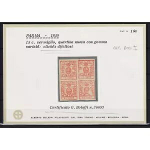 PARMA 1857-59 QUARTINA 15 C. VERMILION NO.9 WITH VARIETY G.I MNH** CERT. BOLAFFI-商品について状態 新品注意事項※以下の注意事項をご理解のうえ、ご購入くだ...