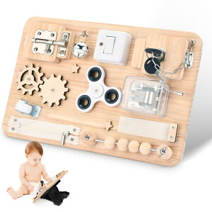 木製ビジーボード 12種類の知育玩具 1 2 3歳 感覚遊び 指先トレーニング 折りたたみスタンド付き 携帯用 男女共用 誕生日プレゼント 自閉症 ADHD 対応 旅行用おもちゃ【モンテッソーリ教育対応】...