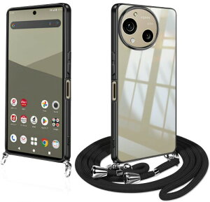 ケース ショルダー クリア SH-51F SH-51E スマホケース カバー 透明 TPU ストラップ付き 肩掛け 首掛け 紐付き 斜めがけ 薄型 耐衝撃(ブラック) 【超軽量&薄型】対応機種AQUOS R10/R9に対応...