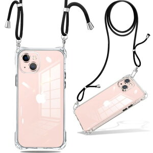 クリア ショルダー 耐衝撃 ストラップ付き スマホケース アイフォン13 カバー 透明 薄型 軽量 TPUスマホ シリコン 紐付き 斜めがけ 織りストラップ付き 肩掛け 調節可能なショルダー クロスボディ...