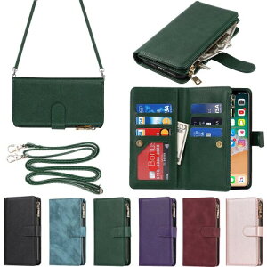 XSmax 縄掛けケース 手帳型 財布型 ICカード コインポケット ストラップ付き カード 収納 小銭入れ ファスナーポケット付き PUレザー 6色グリーン 【1】対応機種: for iPhone XS Max...