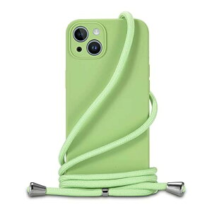 iPhone 14 Plus カバー ネック ショルダー ストラップ付き スマホ シリコン カバー 紐付き 斜めがけ 織りストラップ付き 調節可能なショルダー クロスボディ ネックレス 保護(ミントグリーン)...