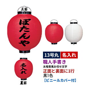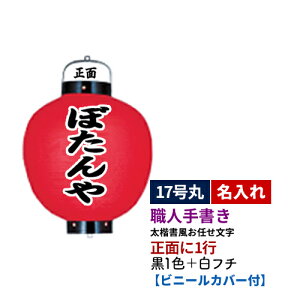 【提灯色】 赤(黒枠) 【素材】 ビニール製 【名入れ内容】 場所:正面+裏面(2面) 内容:黒1色+白フチ付き文字入れ ※1面につき1行まで 書体:職人によるお任せ文字(...