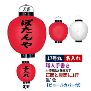 コチラの商品は3個以上で@18,557円(税込) 【提灯サイズ】 17号丸型 φ47.5cm×63cm 【提灯色】 赤(黒枠)/白(黒枠) 【素材】 ビニール製 【名入れ内容】 場所:正面+裏面(2面) 内容:黒1色文字入れ ※1面に...