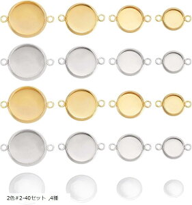 fnuwi5商品名トレイ8/10/12/14mm カボションセッティング 対応透明ガラスカボション付き 304ステンレス製リンクコネクタ ミール皿 カメオ台 台座 メタルチャーム メタルコネクタブランドUNICRAFTALEカラ...