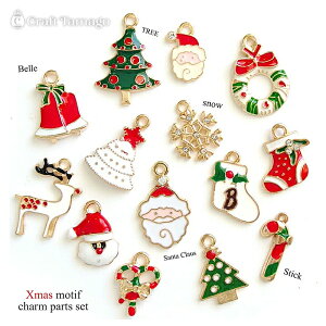 ■商品情報Xmasシーズンにぴったりの、かわいくてカラフルなチャームセットです♪サンタクロース・トナカイ・クリスマスツリー・雪の結晶・靴下・ベルなど、クリスマスモチーフが14種類揃っています。 ハンドメイドアクセサリーの材料と