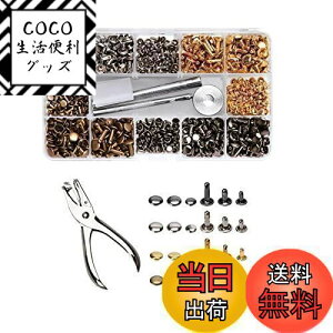 【パッケージ内容】カシメセット*90組;3サイズ(6*6mm/8*8mm/8*12mm)各30組;3種色(ゴールド/シルバー/ガンメタル);工具*3(穴あけポンチ*1/打ち棒*1/打ち台*1);収納ケー...
