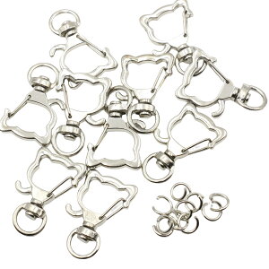 猫型ナスカンです。 キーホルダー、チャーム、アクセサリーなどの各種ハンドメイドにご活用下さい。 ■数量 10個セット ■サイズ 全長:縦34mmx横22mm ■カラー 全4色 ■ご注意点 ・製造ロットにより、若干のサイズ違い・色味の違...