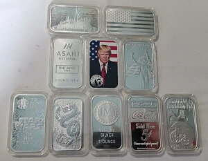 TEN (10) 1 oz. Silver Bars with 10 Different Designs .999 Fine Silver w/Capsules商品について販売者コメント「さらに銅バーも!」組成:銀形状:バー純度:0....