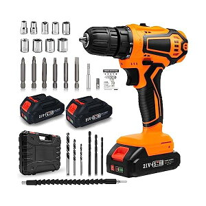 21V 1500 mAh大容量バッテリー2個付き 充電電子ドライバー 25段階トルク調節 最大32N.m スピード調節機能 正逆転切替 収納ケース ビット21種付 電動工具DIY初心者でも使いやすいブランド色イエロー+...