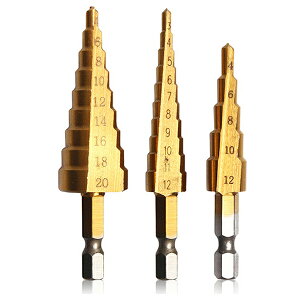 お得な3ピースセット ケース付き ステップドリル 違う大きさの穴開けに対応!面取り、穴の拡大、バリ取りにも活躍! ステップドリルは段階的に大きさの違う穴開けができる工具です。 それぞれ ・3,4,5,...