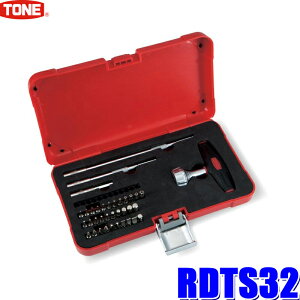 ラチェット機能付きT形グリップに使用頻度の高いビット32種類がセット。