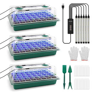 【送料無料】育苗ポット植物育成ライト付き 3個セット 育苗トレイ 育苗箱 12穴 高くする透明カバー 種子トレイ 発芽?育苗セット 種まきハウス 苗箱 種まき器 育苗ボックス 便利性 耐久性 通気性 野菜栽培...