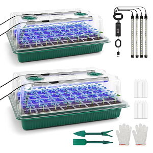 72穴 植物育成ライト付き 育苗箱 種まきポット トレー 高さ16cm 透明カバー 発芽育苗器 発芽?育苗セット 育苗ボックス 種子トレイ 苗箱 ライト 移植ツール2個 植物ラベル20枚付き 種まきハウス 湿