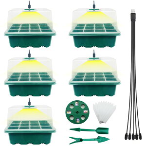 BlumWay 育苗ポット 育苗トレイ 5個セット 12穴 植物育成ライト付き 育苗箱 発芽?育苗セット 種まきハウス 湿度・温度管理 通気性 耐久性 園芸 植物栽培 園芸/植栽/庭園 【自動散水設計】播種用の新しい設計...