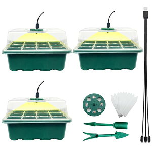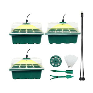 スタイル:シンプル◆商品名:育苗ポット植物育成ライト付き 育苗トレ イ 育苗箱 12穴 3個セット 高くする透明カバー 種子トレ イ 発芽?育苗セット 種まきハウス 苗箱 種まき器 育苗ボックス 便利性...