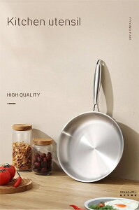 【五層ステンレス製】人間工学に基づいたデザインと優れた機能を兼ね備えた五層ステンレスフライパン。高度な調理性能を実現し、ステンレス表面は食材と反応せず、味を損なうことはありません。 【主な特長】五層複合鋼構造により、純