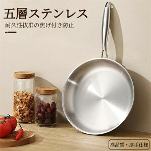 【五層ステンレス製】人間工学に基づいたデザインと優れた機能を兼ね備えた五層ステンレスフライパン。高度な調理性能を実現し、ステンレス表面は食材と反応せず、味を損なうことはありません。 【主な特長】五層複合鋼構造により、純