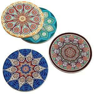 コースターセラミック吸収性コースターコルクベース、カップの種類用ホルダー付き、ダイニングルームの装飾、新築祝いのギフトセット4個 (マンダラ) 高吸湿性の粘土、液吸収性材料でできているため、水たまりが残りません...