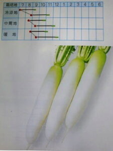 メーカー:タカヤマ 【特長】 ●ウイルス病、ナンプ病、ベト病に強い耐病性があり、生育旺盛で葉は鮮緑、半立性。揃いがよく栽培容易な青首総太り型です。 ●根部は肥大性に優れ、首部は鮮緑色で着色よく、均整がとれ、適期収穫で根長3