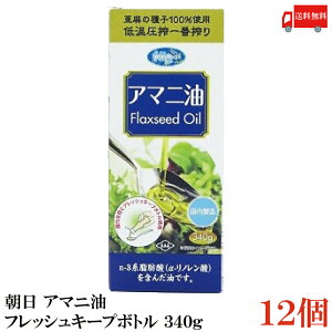 朝日 アマニ油 鮮度維持ボトル入り 340g×12本。アマニ油はアマ科の1年草の植物の種子を低温で絞った油です。亜麻の種子を100%使用。α-リノレン酸を100gあたり50%以上含んだ身体に優しい油です。