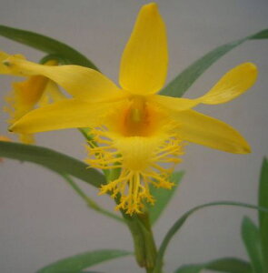 デンドロビウム属ブリメリアナム 黄色の艶のあるぺタルとセパル リップの縁が細かく切れ込む。 自生地:タイ,ミャンマー 標高:1700m 花期:春, 写真1は花見本です。