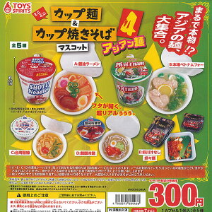 300円カプセル自販機商品のフルコンプです。【ミニミニ カップ麺 & カップ焼きそば マスコット 4 アジアン麺 全5種+ディスプレイ台紙セット】★ラインナップの種類は以下となります。 1:醤油ラーメン 2:本場ベトナムフォー...