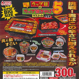 300円カプセル自販機商品のフルコンプです。【ミニミニ カップ麺 & カップ焼きそば マスコット 5 全5種セット】★ラインナップの種類は以下となります。 1:激辛やきそば BIGサイズ 2:天ぷらそば 3:きつねうどん...