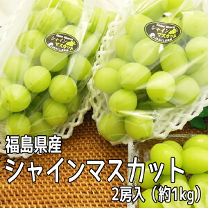 福島県産 シャインマスカット(種なし) 産地:福島県伊達市・福島市・桑折町 内容量 2房入 約1kg(1房約500g前後)。