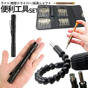 【商品説明】 \狭い場所や暗い場所での作業が捗る♪/ ・ペン型爆光ミニ懐中電灯 -PENNLIGHT- ・精密ドライバー24ビットSET -DORASET- ・変幻自在にくねくね動く延長シャフト -HEBISHAFT- かゆいところに...