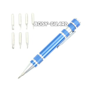 商品説明8本のビットが備わったペン型のドライバーセット!ちょっとしたネジ締めから、精密な作業まで、あると便利な多機能キットです。ペンクリップ付きでコンパクトサイズなのでポケットへの収納がしやすく、アルミ素材で軽いため