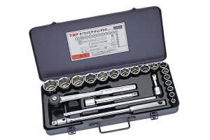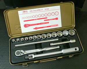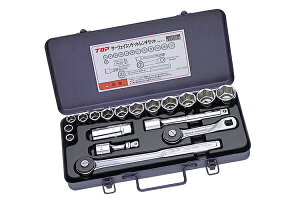 画像は代表画像です。 特長 差込角 12.7mm(1/2”)、6角サーフェイスソケット17種に、ラチェットハンドル、スピンナハンドル、エクステンションバー(150mm)、フレックスエクステンションバー(75mm)...