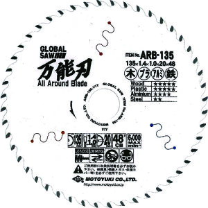 1枚で木材からアルミ材・鉄材まで切れます。 外径(mm)147 穴径(mm)20 最高使用回転数(rpm)10500 刃厚(mm)1.6 刃数52 切断能力(mm)アングル3 切断能力(mm)鉄鋼 切断能力(mm)鉄板1.5 切断能力...