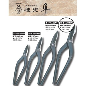 【種光】は100余年の歴史を有しその伝統と技術は、新しい形で受け継がれています。切味の鋭さと、驚くべき耐久力を誇るハイス21。ハイス鋼(SKH-51)を使用した最高級品で自他共に認める世界一の金切鋏です...
