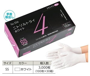 ■カテゴリ保護具>作業手袋>使い捨て手袋>ニトリル手袋●メーカー名: 株式会社エブノ●ブランド名: エブノ《仕様》【食品衛生法適合】【ディスポ】【左右兼用】【滑止加工】●カラー(色): ホワイト(白)●サイズ: SS●厚さ(mm): 指