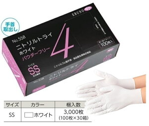 ■カテゴリ保護具>作業手袋>使い捨て手袋>ニトリル手袋●メーカー名: 株式会社エブノ●ブランド名: エブノ《仕様》【食品衛生法適合】【ディスポ】【左右兼用】【滑止加工】【パウダーフリー】●カラー(色): ホワイト(白)●サイズ