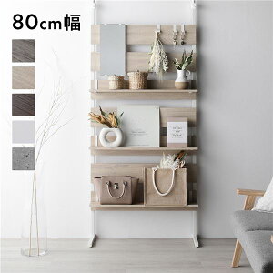 収納ラック・収納グッズ お部屋のいろいろな場所に設置できる突っ張り式ラック。パーテーションや間仕切りとしても活躍します。幅80cmタイプ フレーム:スチール、棚板:プリント紙化粧繊維板、メラミン樹脂化粧繊維板