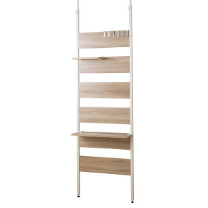 ■商品紹介 商品名:突っ張りラック 壁面収納 【材質】 本体:プリント紙化粧繊維板 脚部・フック・つっぱりパイプ:スチール(粉体塗装) サイズ: 幅:約60cm 奥行:19.5cm 高さ:200〜260cm...