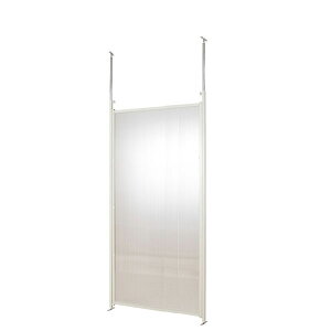 製品仕様(組立式) 商品外寸(約) 幅90×奥行2.5×高さ201〜260cm 重量(約) 15kg サイズ(約) パネル:幅85×奥行2.5×高さ181cm 補助金具脚:奥行11cm 材質 パネル(クリア):ポリカーボネイト フレー...